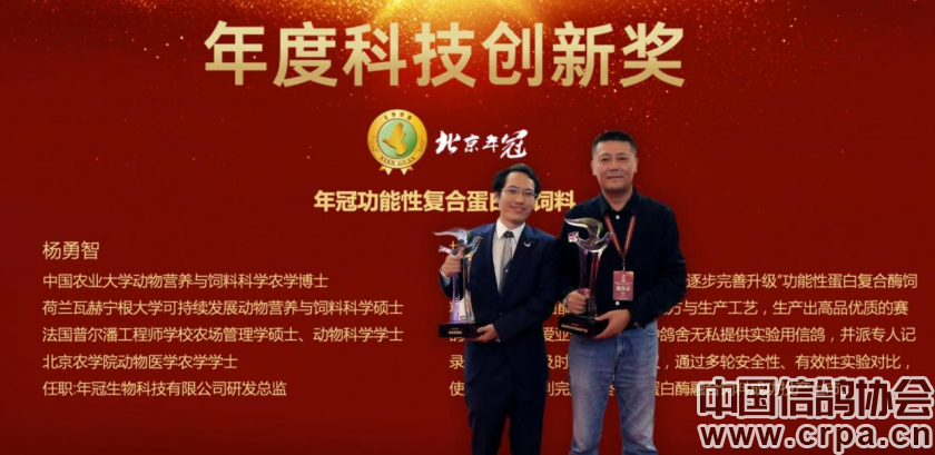 中国信鸽饲料领军企业--年冠生物,作为中国信鸽协会的“理事单位”和长期合作的“支持单位”,致力于信鸽饲料与营养研究二十六年,不仅推动了中国信鸽行业的发展,更凭借其尖端的技术创新能力和杰出的表现,稳坐信鸽饲料行业领航者的地位,被公认为“中国信鸽饲料第一品牌”。